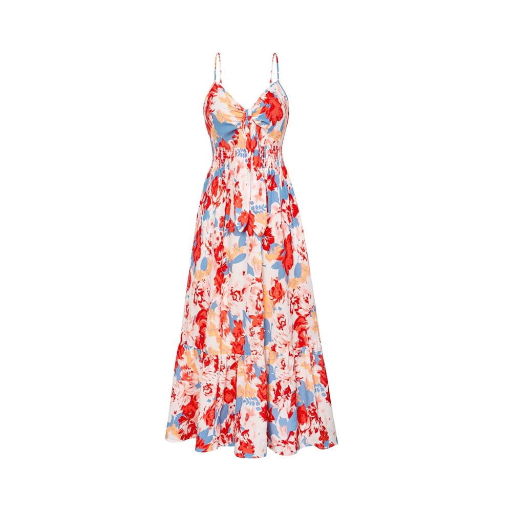 Women's 2025 Summer Maxi Dress Floral Tie Front Spaghetti Strap Casual Boho Beach Flowy Sundress with Pockets